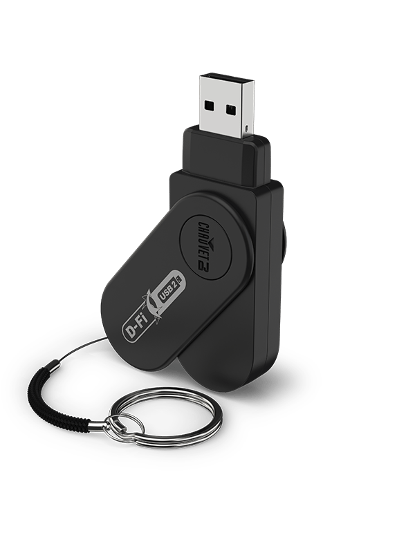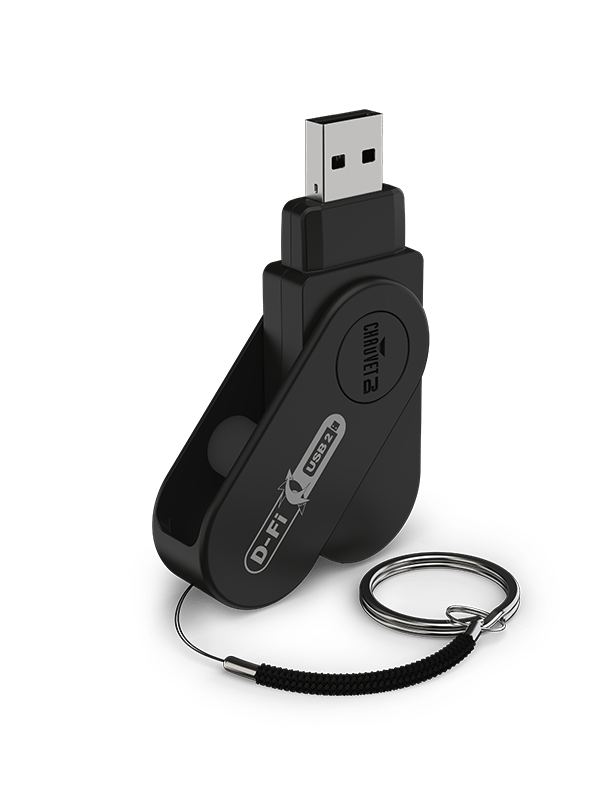 Streamline your lighting setup with the improved version of our proprietary USB wireless DMX transceiver: D-Fi USB 2. New LED indicators simplify channel selection. Its single-material plastic housing is sleek and ideal for signal transmission. Enjoy the convenience of wireless connection that eliminates the need for DMX cables with this handy device powered directly from your CHAUVET DJ lighting fixture’s USB port. This easy-to-use D-Fi solution makes setup time a breeze.