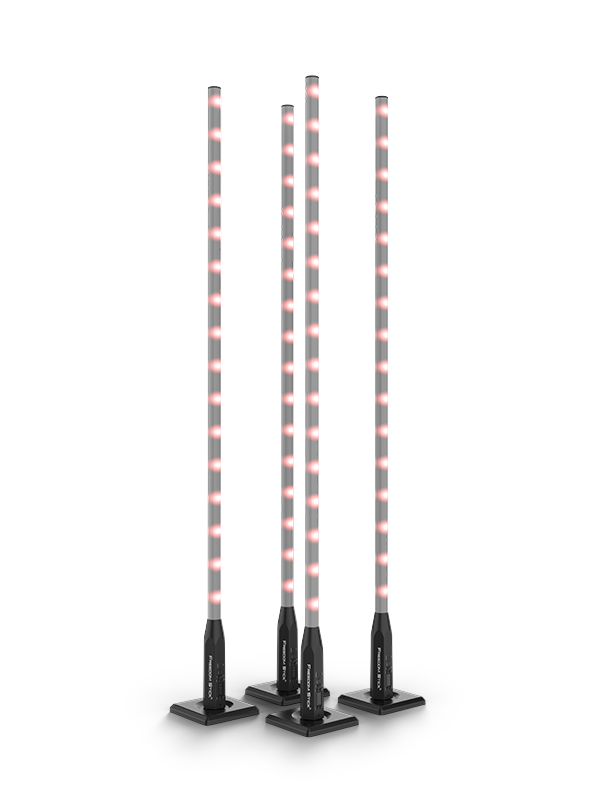 This 4-pack of 100% wireless lighting creativity will infuse any event with dazzling visual excitement. Freedom Stick X4 is bundle of four unique and versatile free-standing LED array lights. Battery-powered and loaded with a wireless D-fi transceiver, Freedom Stick units are virtually unlimited in their use. But that’s just the start of Freedom Stick flexibility. This pack also includes four slip-on frosted tubes for two completely different looks. Each LED can be pixel-mapped for ultimate programming creativity and the metal bases are detachable for a variety of mounting options. Half of the stick can be deactivated to provide a 180° effect saving battery life. Control options are also flexible. Freedom Stick X4 units are RF compatible and include an RF remote. The RFC-XL remote (sold separately) allows grouping of several sets of Freedom Sticks without DMX. But built-in 3-pin DMX connectors make control compatible with other DMX enabled fixtures as well. Control auto and sound programs via DMX, wireless master/slave, or the included RFC remote. With Freedom Stick X4, your lighting creativity is only limited by your imagination!