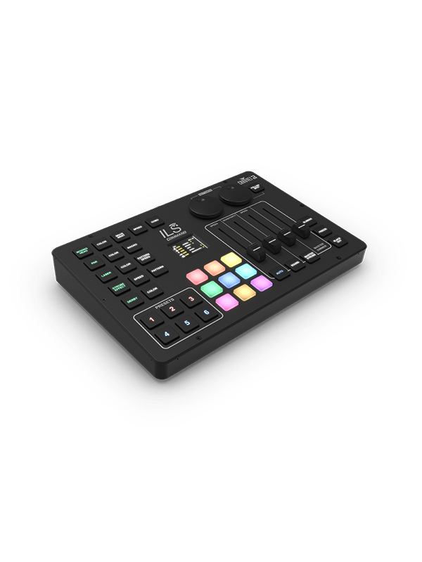 Light up the night without setting up all day with ILS – the Integrated Lighting System that makes creating a synchronized light show across different fixture types fast and easy without DMX. Now the ILS universe is at your command with ILS Command, a powerful controller capable of programing any ILS-enabled product. This hardware controller has a built-in D-Fi transmitter that wirelessly controls an unlimited number of ILS-enabled fixtures. Enjoy unlimited creativity as you customize, save and recall presets even in dark environments where backlit silicon buttons provide a tactile response and bright visibility. Your lighting creations are always safe because you can back up, restore and update the controller’s software using the built-in USB port and ensure unauthorized access is blocked by enabling the onboard lockout. An innovative follow spot mode highlights grand entrances without interrupting the rest of the show and a built-in audio connector allows for better accuracy when triggering lights to the beat. Manually override the show on the fly using the 9 quick color access buttons. Safely transport the controller with the included carry case.