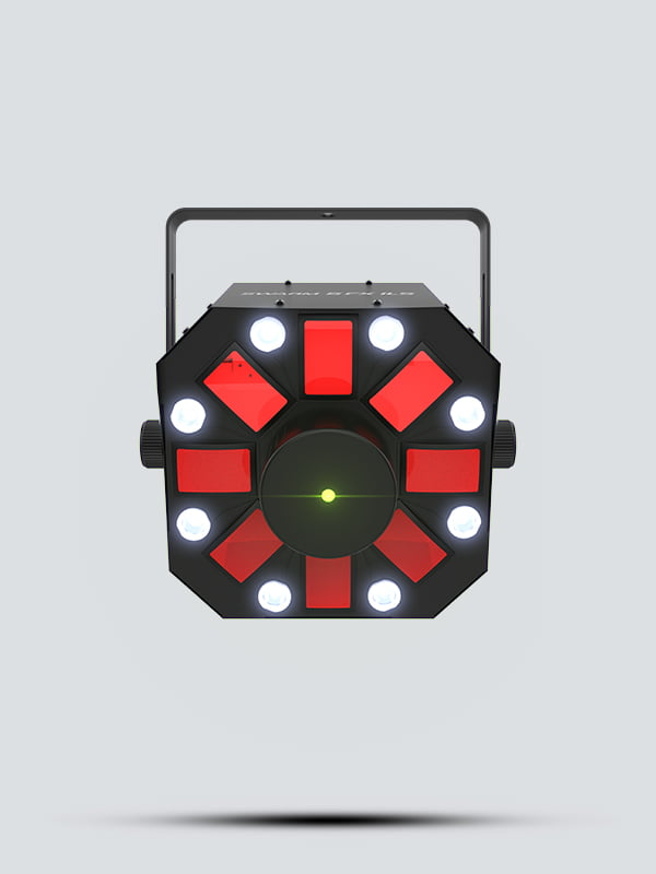 Your parties deserve the excitement of Swarm 5 FX ILS. This 3-in-1 LED light that includes an RGBAW rotating derby, red/green laser, and white strobe effect and compatibility with the cutting edge Integrated Lighting System (ILS) that makes creating coordinated light shows across different fixture types easy. Swarm 5 FX ILS also features D-Fi USB compatibility for wireless Master/Slave or DMX control. Flexibility is even greater with automated and sound-activated programs, or Master/Slave and DMX modes and separate color and program control.