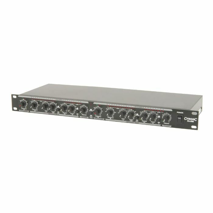 An enhancer on each channel helps restore high frequencies under heavy compression. Also useful for protecting loudspeakers by curtailing the output once it reaches a preset threshold level. The gate helps to reduce noise in silent passages.