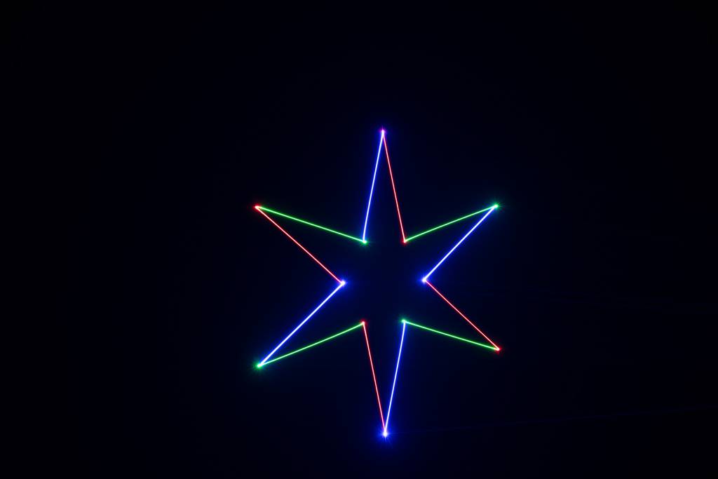 The Laserworld CS-1000RGB MKII power ranges from 800 – 1000mW, with >200mW/650nm red, >70mW/532nm green and >530mW/445nm blue. The scanning system is graphics capable and suitable for projecting basic logos and texts as well as abstracts. Together with fog or haze in the air the Laserworld CS-1000RGB MKII creates awesome beam and wave effects. Liquid sky effects are possible as well as multi colored beam effects – together with software control all kinds of patterns can be created and displayed through the MKII.