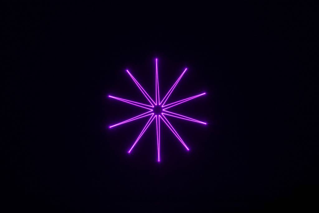 Via DMX, in automatic and music mode, over 250 Patterns (level, tunnel, grid, waves, etc.) can be projected in various colors and speeds. When the automatic mode is active, the patterns are played back automatically. In music mode, the playback synchronizes with the music.