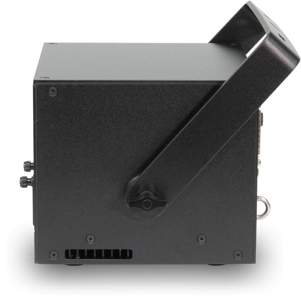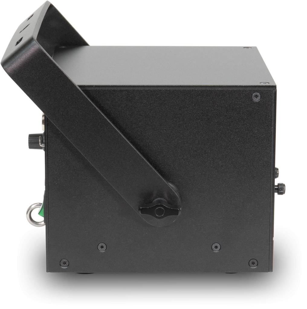 A stable mounting bracket allows for various mounting and positioning options, enabling the projector to be used both hanging and standing on the bracket. It is equally suitable for permanent installations on truss systems, ceilings, or walls – ideal for small to medium-sized nightclubs, indoor events, and mobile DJs.