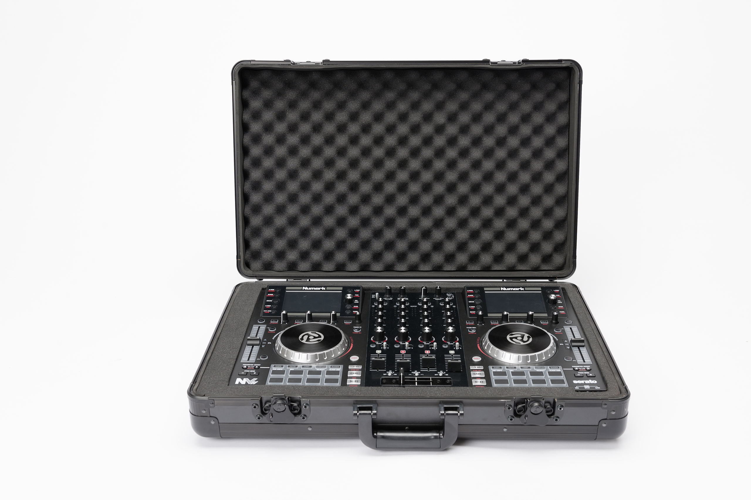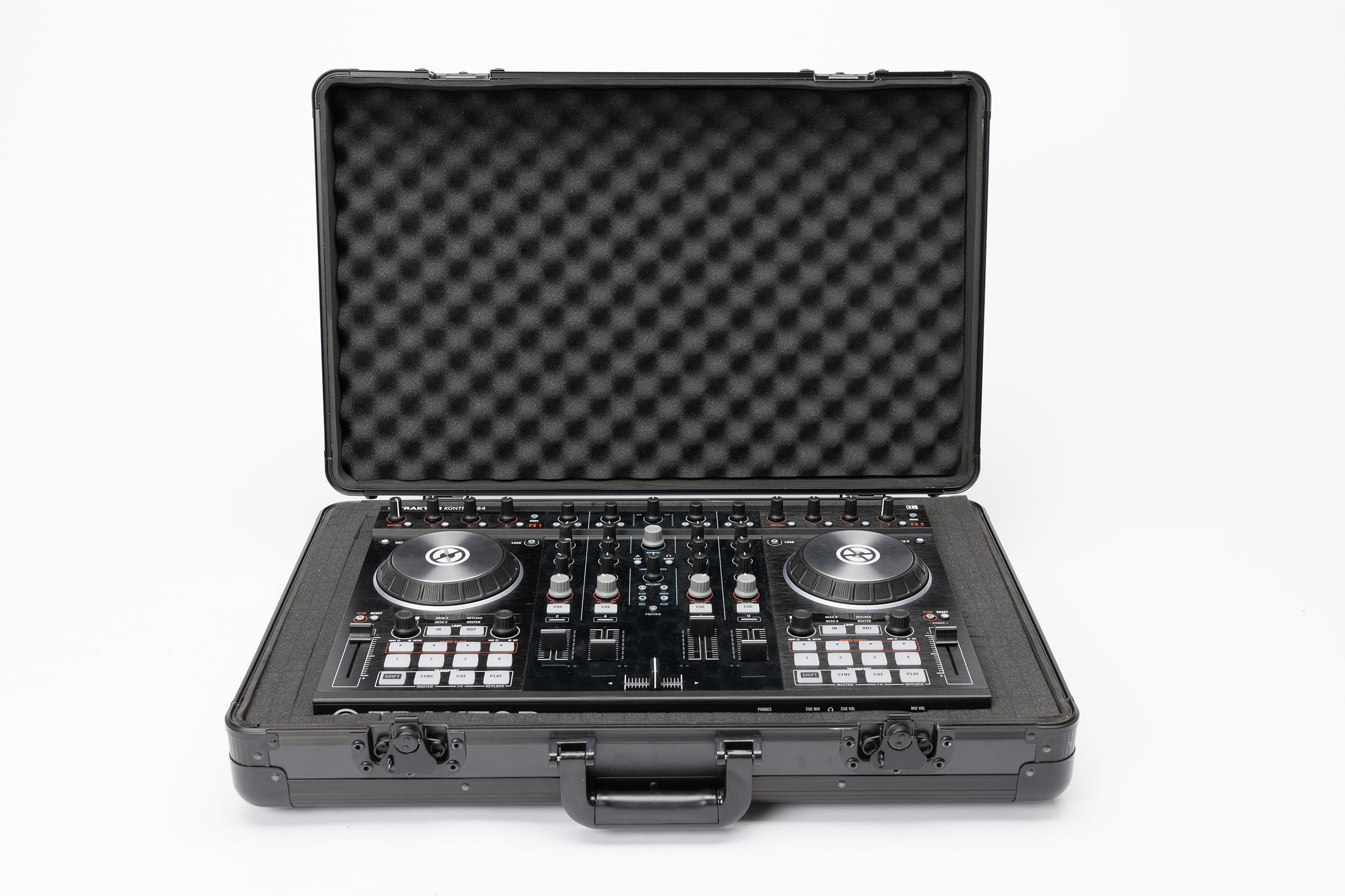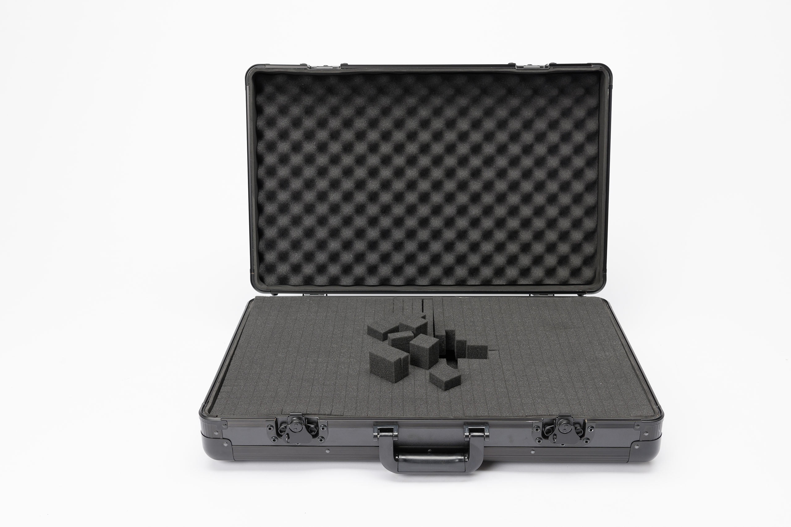 The new CARRY LITE DJ-CASE XL PLUS is a very lightweight and compact carrying solution for your DJ equipment and comes in a nice full-black matt finishing. Constructed from laminated MDF panels and anodized aluminum profiles the CARRY LITE design features a fully padded interior with a variable pick & pluck foam that allows to create individual adapted compartments for various-sized DJ-controllers such as Pioneer DDJ-SR2, Numark NV2, NI Control S4 MK3 or similar-sized DJ controllers. The pick & pluck foam consists of two separate layers providing the additional option to create another slot underneath the controller for laptop or cable storage.