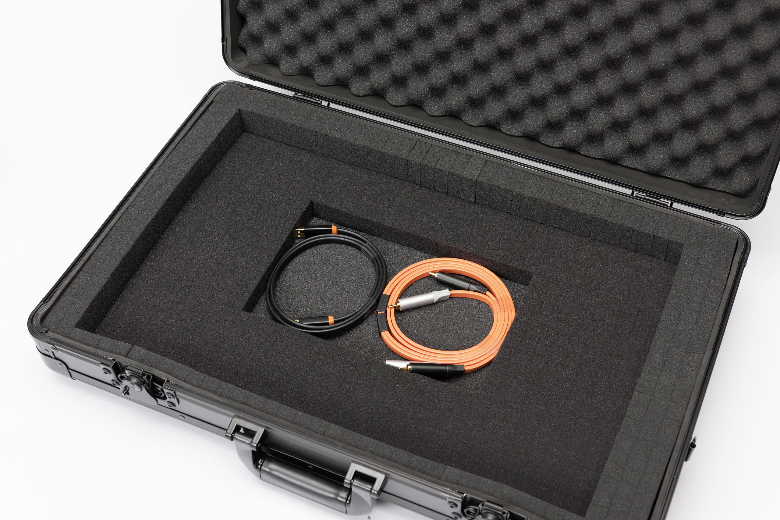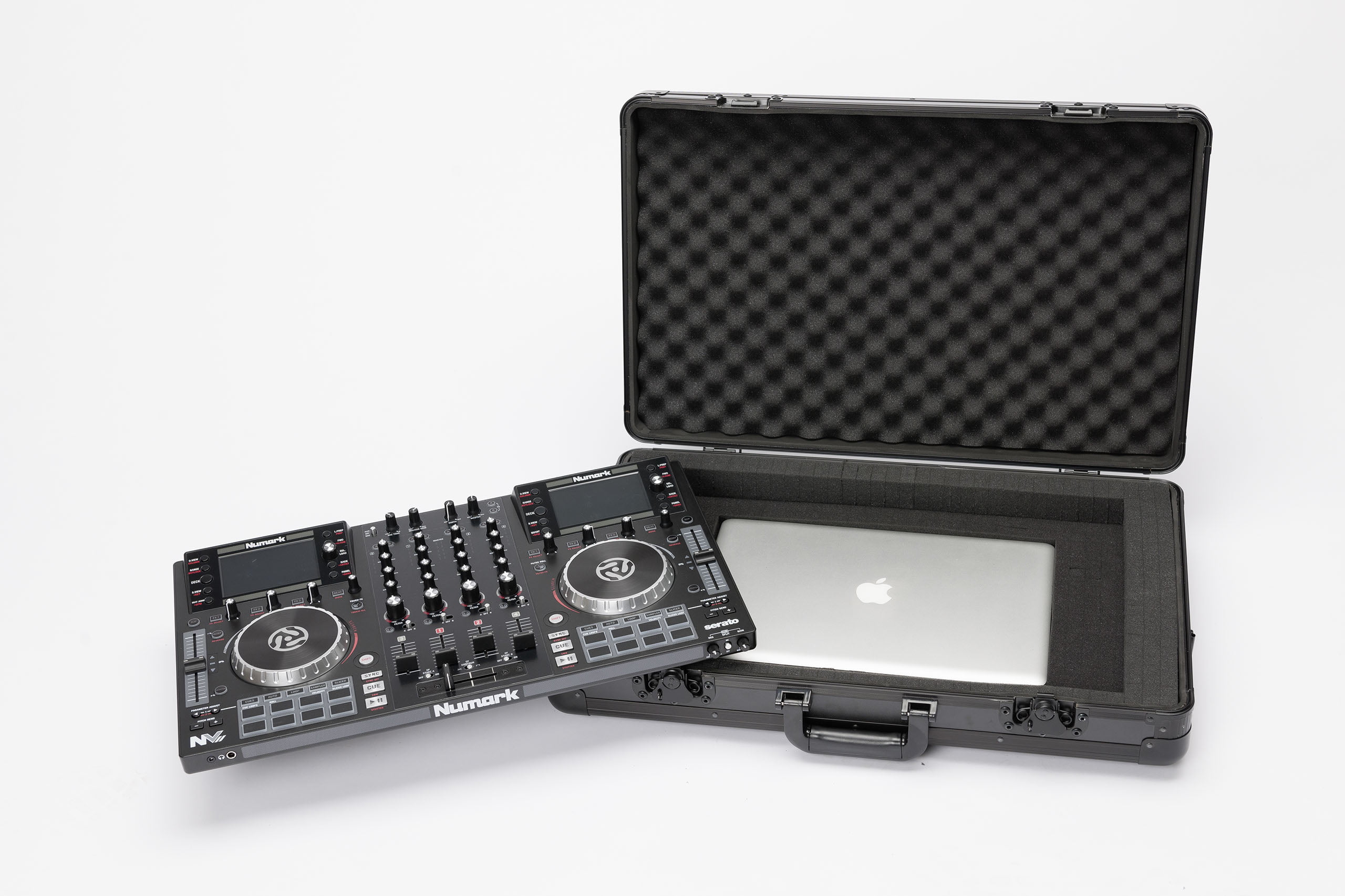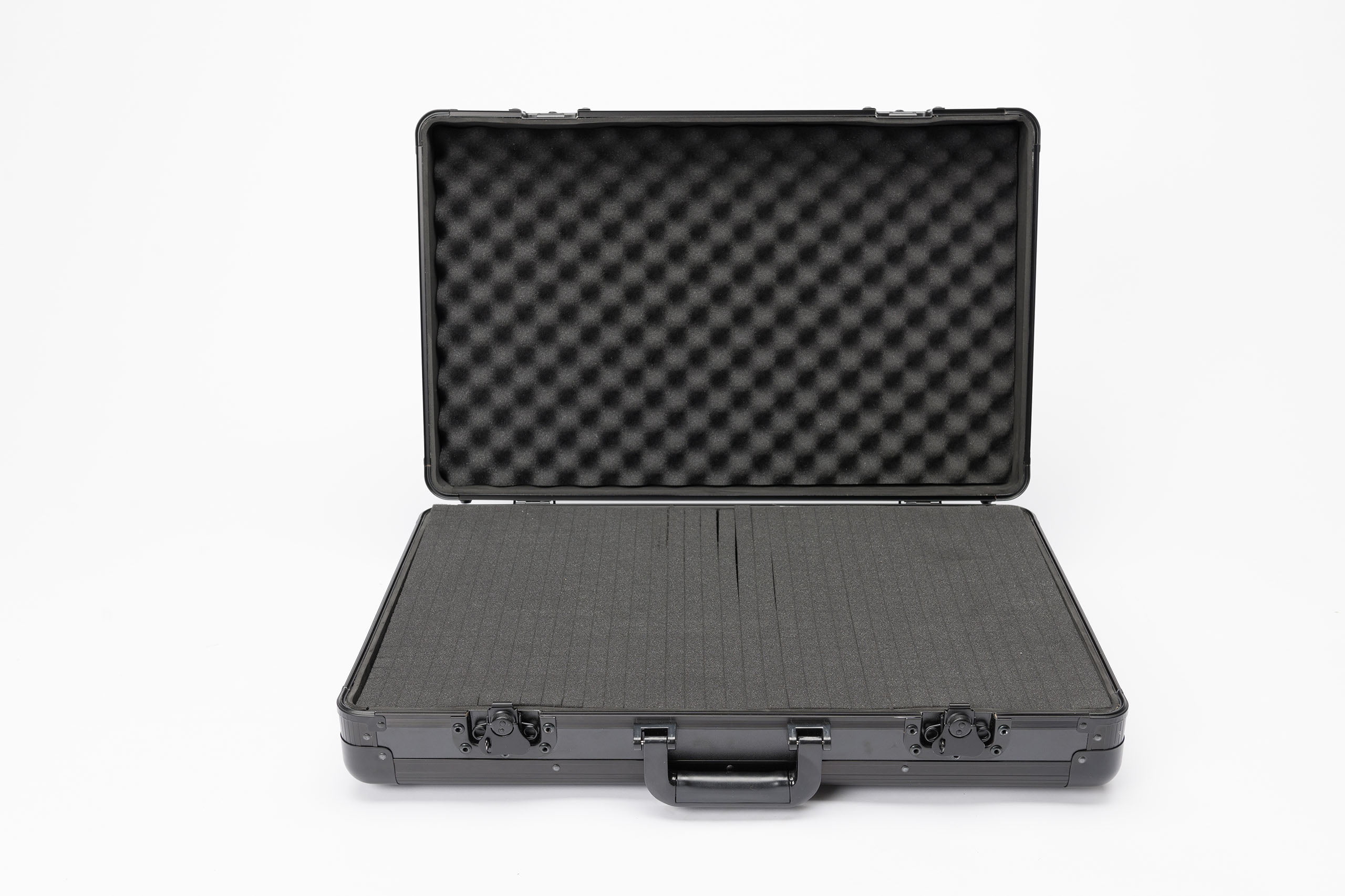 The new CARRY LITE DJ-CASE XL PLUS is a very lightweight and compact carrying solution for your DJ equipment and comes in a nice full-black matt finishing. Constructed from laminated MDF panels and anodized aluminum profiles the CARRY LITE design features a fully padded interior with a variable pick & pluck foam that allows to create individual adapted compartments for various-sized DJ-controllers such as Pioneer DDJ-SR2, Numark NV2, NI Control S4 MK3 or similar-sized DJ controllers. The pick & pluck foam consists of two separate layers providing the additional option to create another slot underneath the controller for laptop or cable storage.