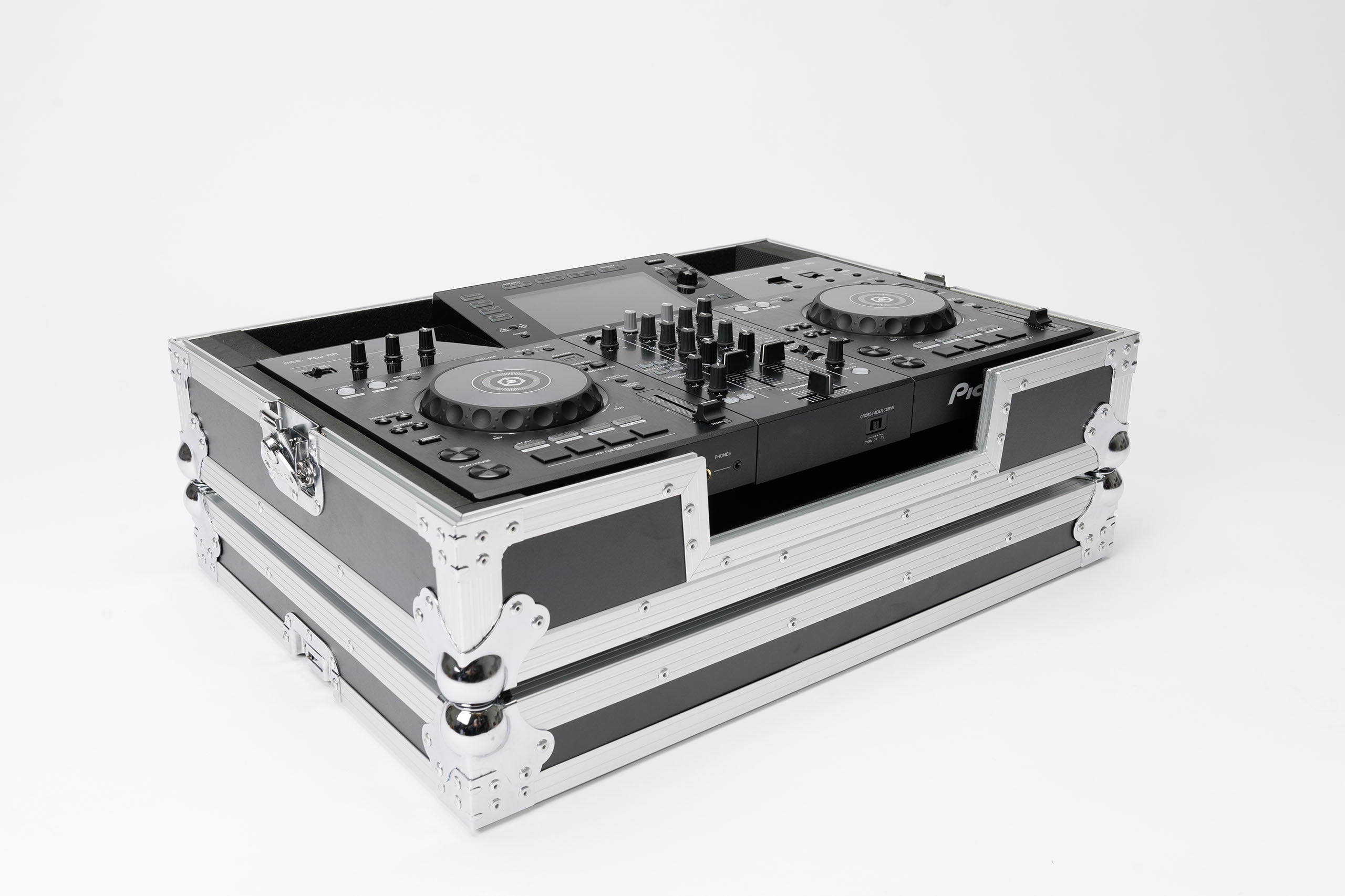 Customized to hold the Pioneer XDJ-RR DJ-Controller. Crafted from 9 mm vinyl laminated plywood, sturdy aluminum profiles and heavy duty butterfly latches, this case provides ultimate protection for mobile use on the road.