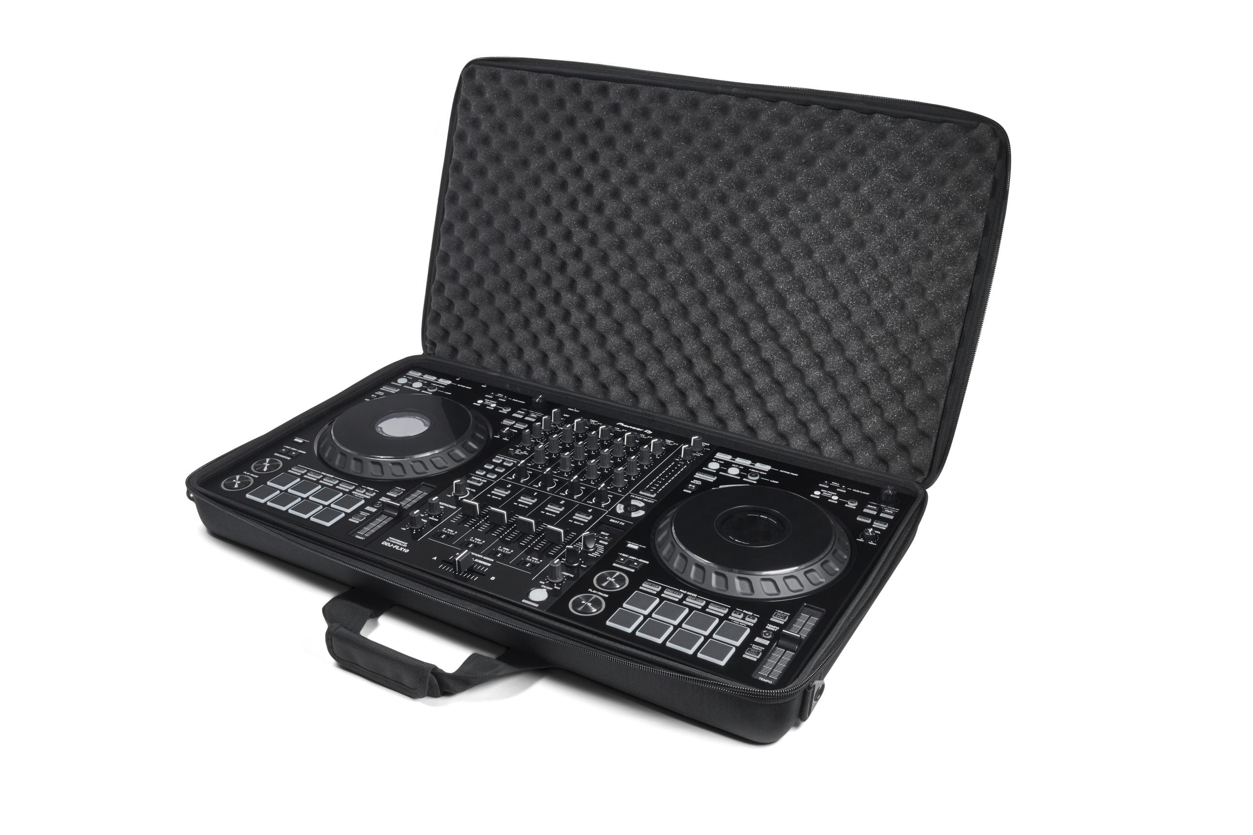 Compact protection for your DJ Controller. This DJ controller bag is the perfect size for the DDJ-FLX10 Made with an EVA Durashock molded body, black ballistic polyester, black fleece lining. It’s tough enough to protect the unit against bumps and scrapes, but lightweight for easy carrying.