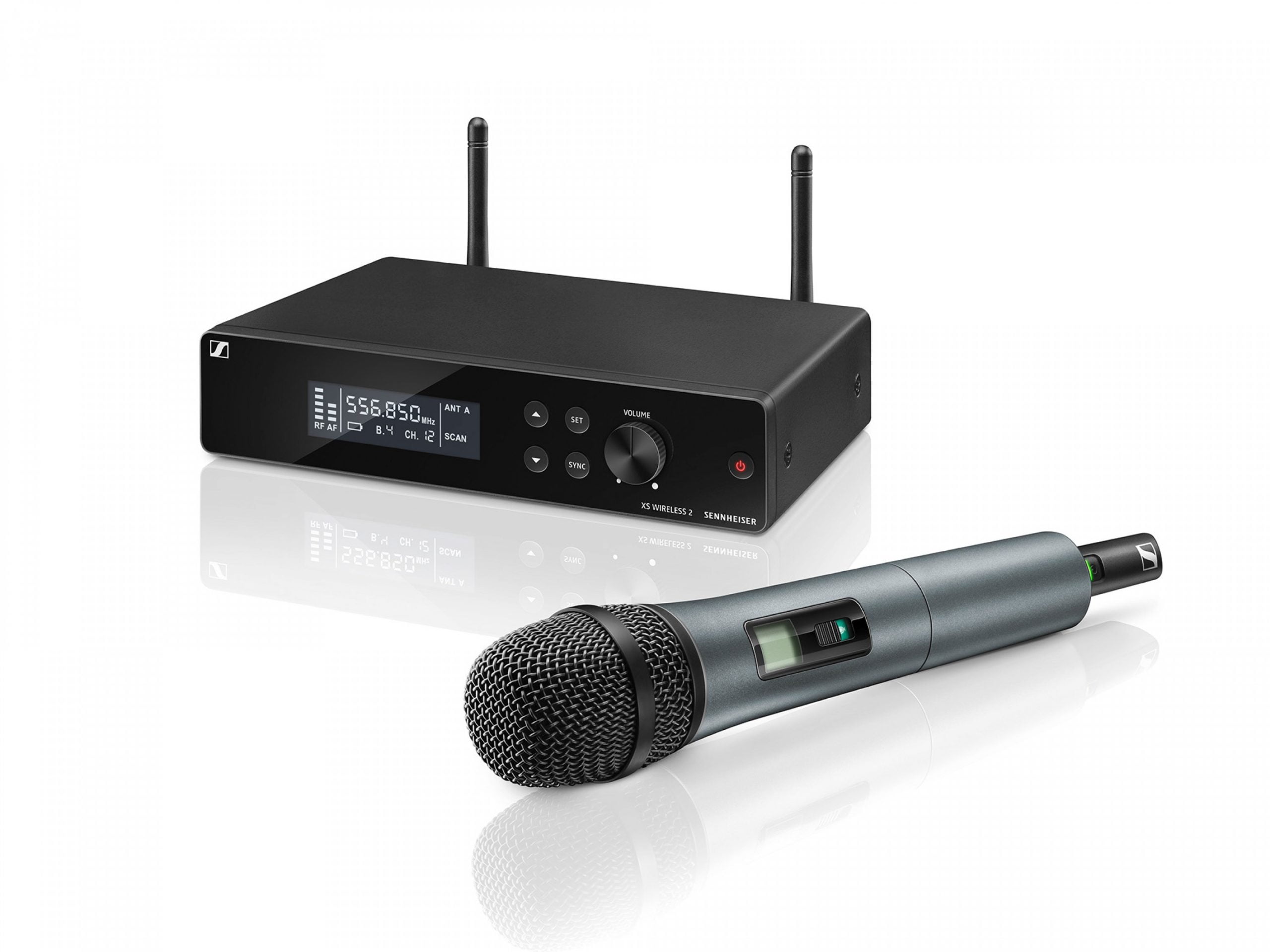 Raise your voice. High flexibility for those willing to go a step further. XS WIRELESS 2 grows with your demands by offering an intuitive LCD display for more manual options and 12 compatible channels in a stable UHF band, withstanding tougher live stage conditions. The XS WIRELESS 2 VOCAL SET is an easy to use all-in-one wireless system for singers and presenters featuring Sennheiser’s renowned evolution microphone capsule e835 (superior dynamic, cardioid) to perform under pressure. True Diversity receiver in a metal housing and rackmount kit included.